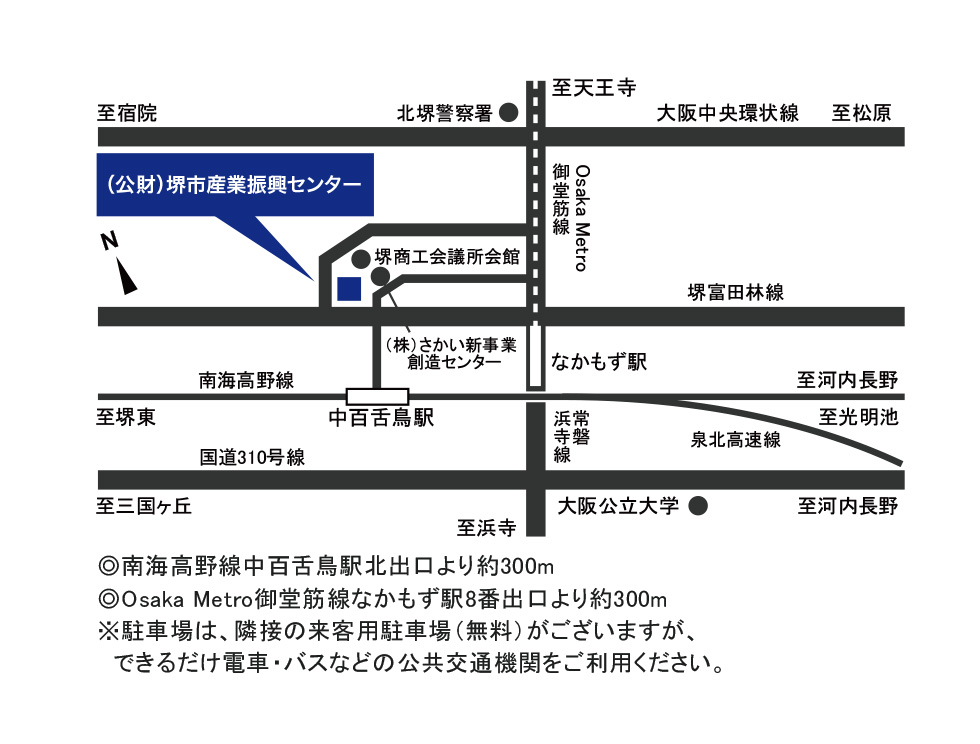 ![]() ■大阪メトロ御堂筋線「なかもず駅」北出口より徒歩約5分 ■南海高野線「中百舌鳥駅」8番出口より徒歩約5分 |